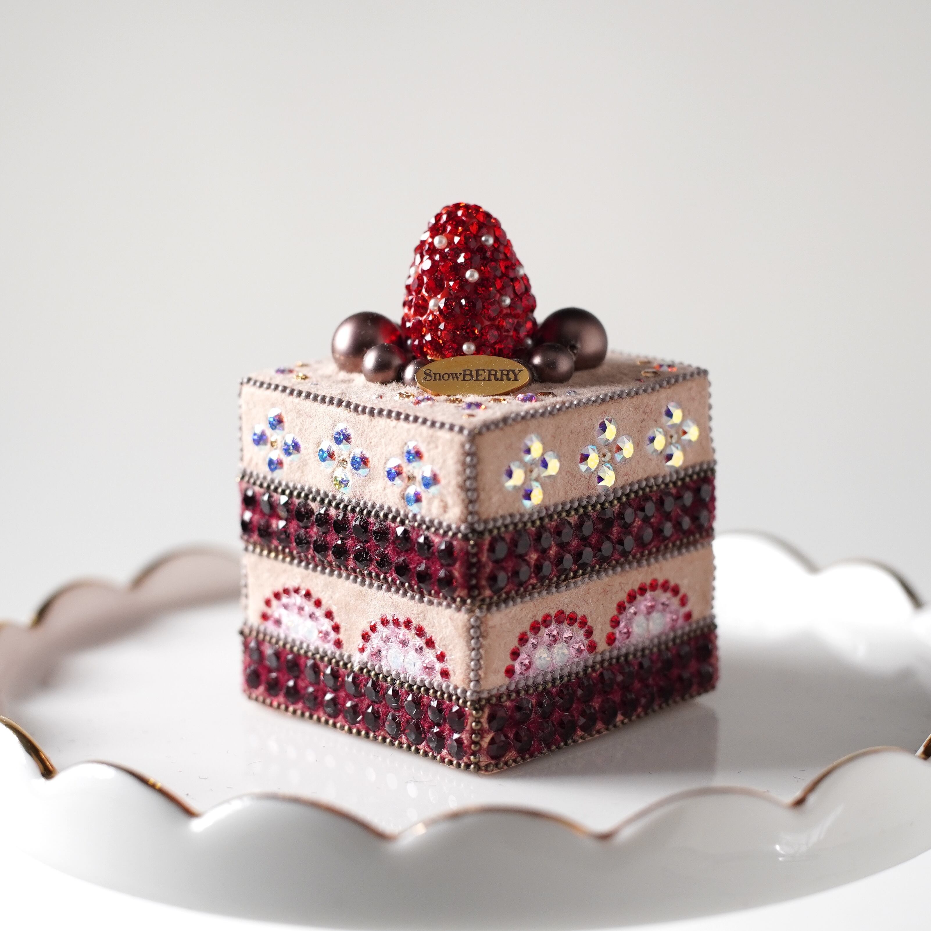光を受けるたびにキラキラと輝くその姿は、食べるケーキを超えた、まさにジュエリーそのもの。