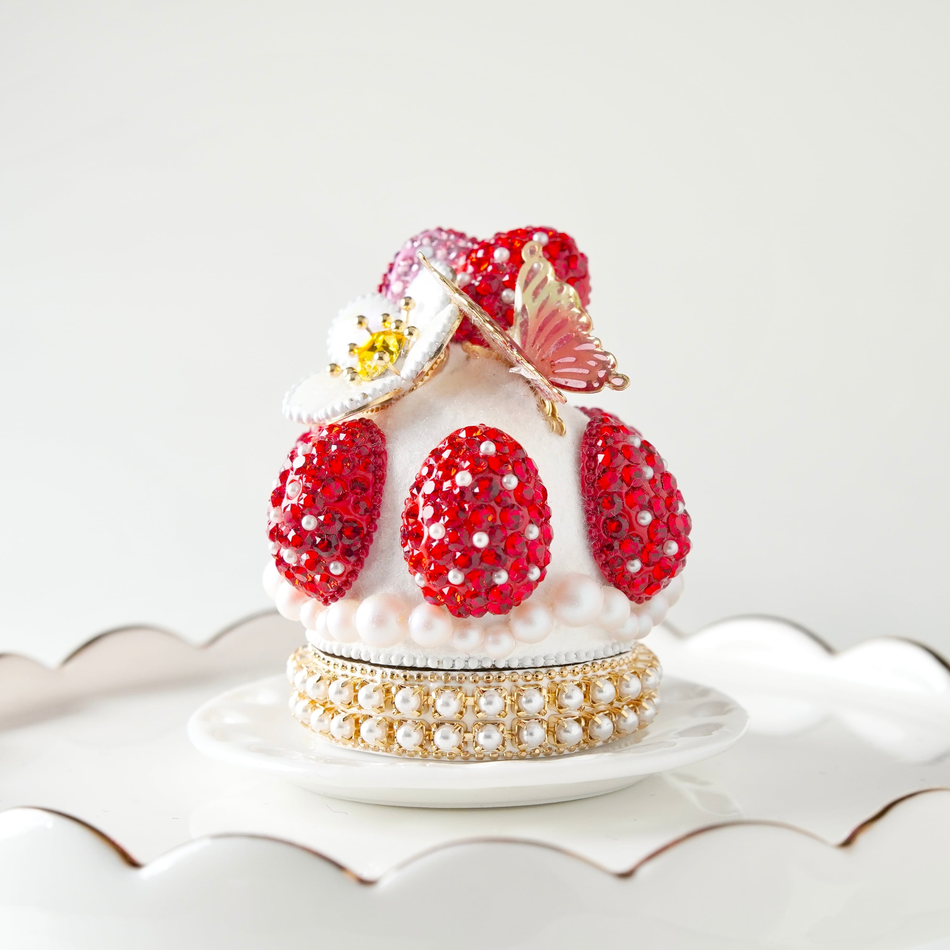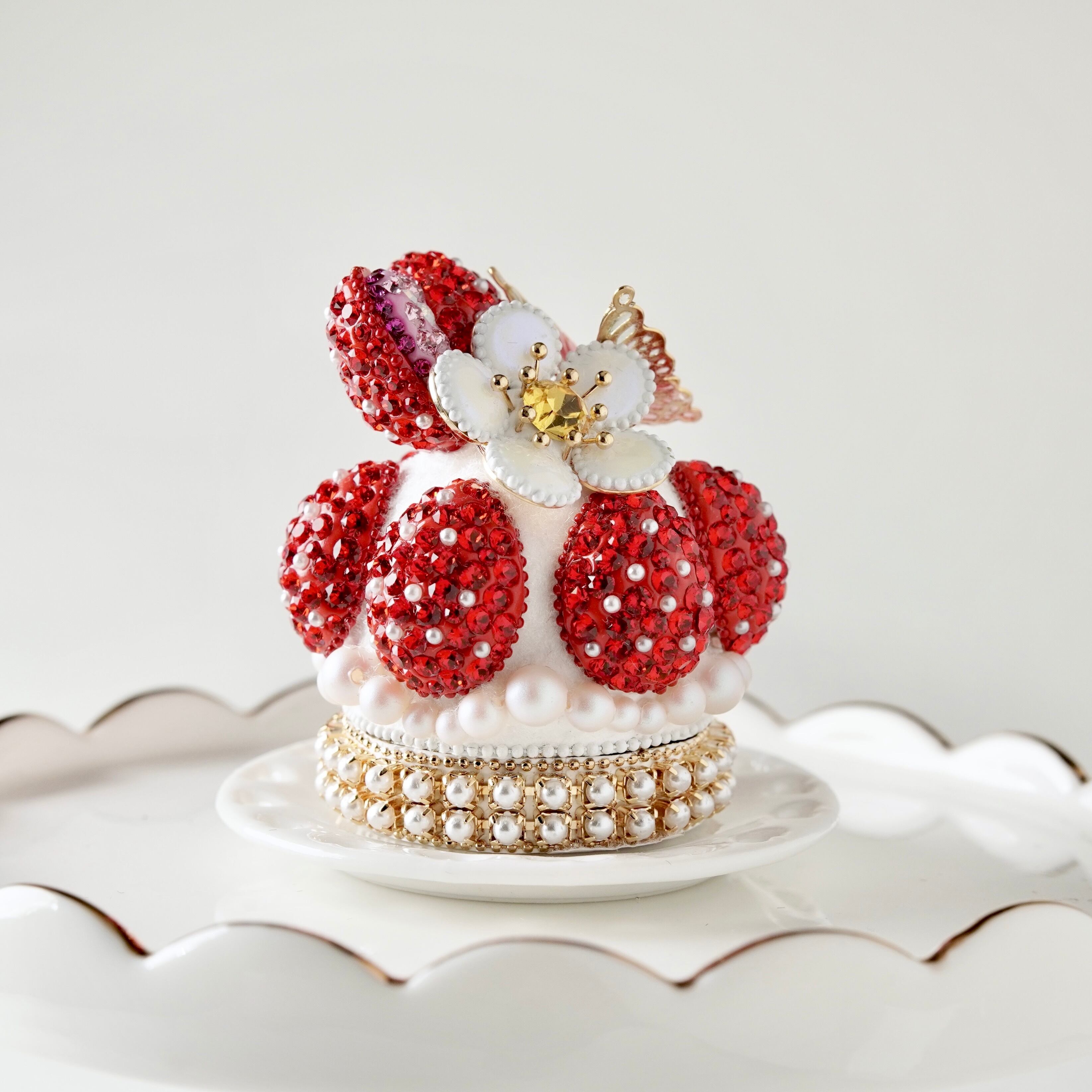ストーンの配置や溢れる苺など、手仕事ならではの繊細な表情をお楽しみください。