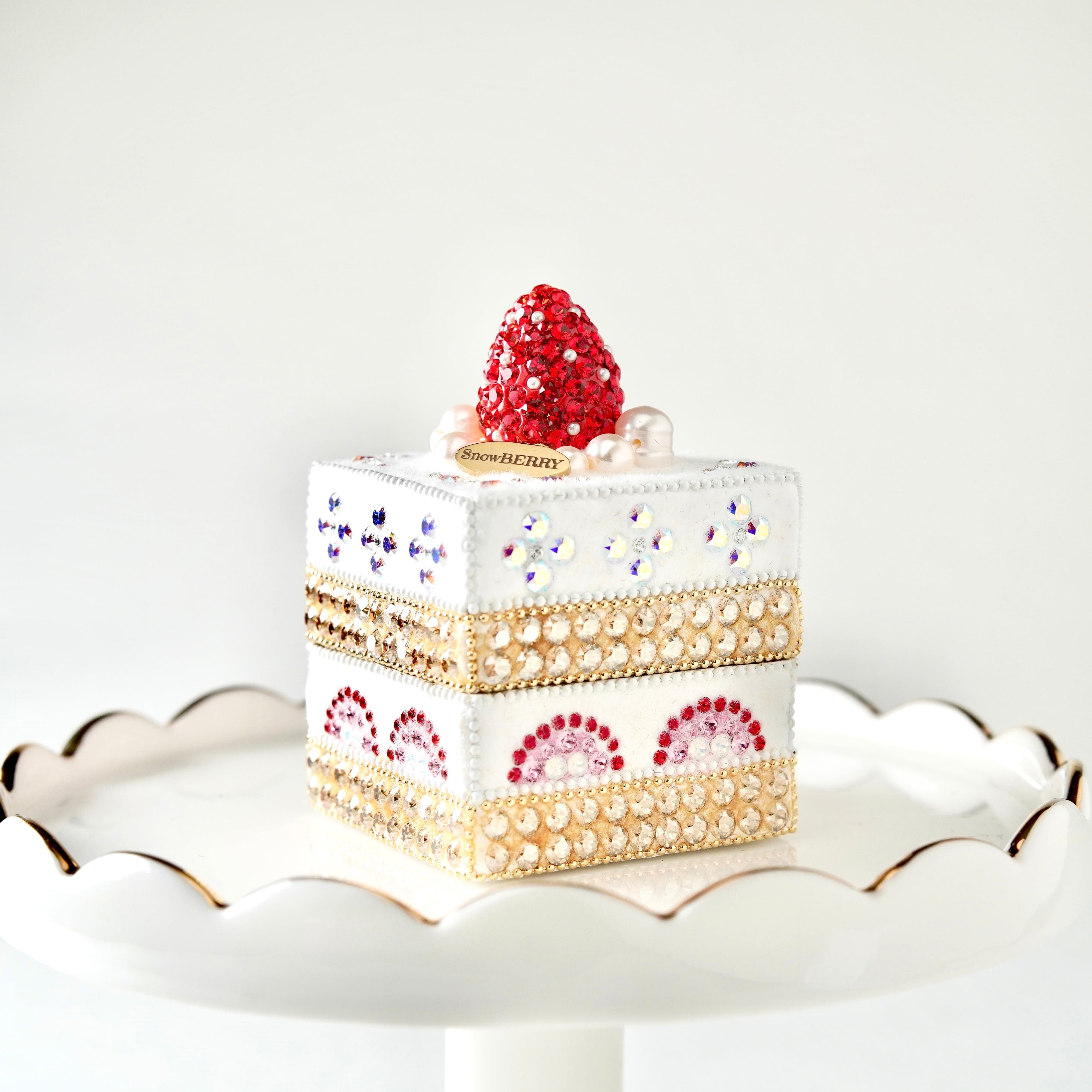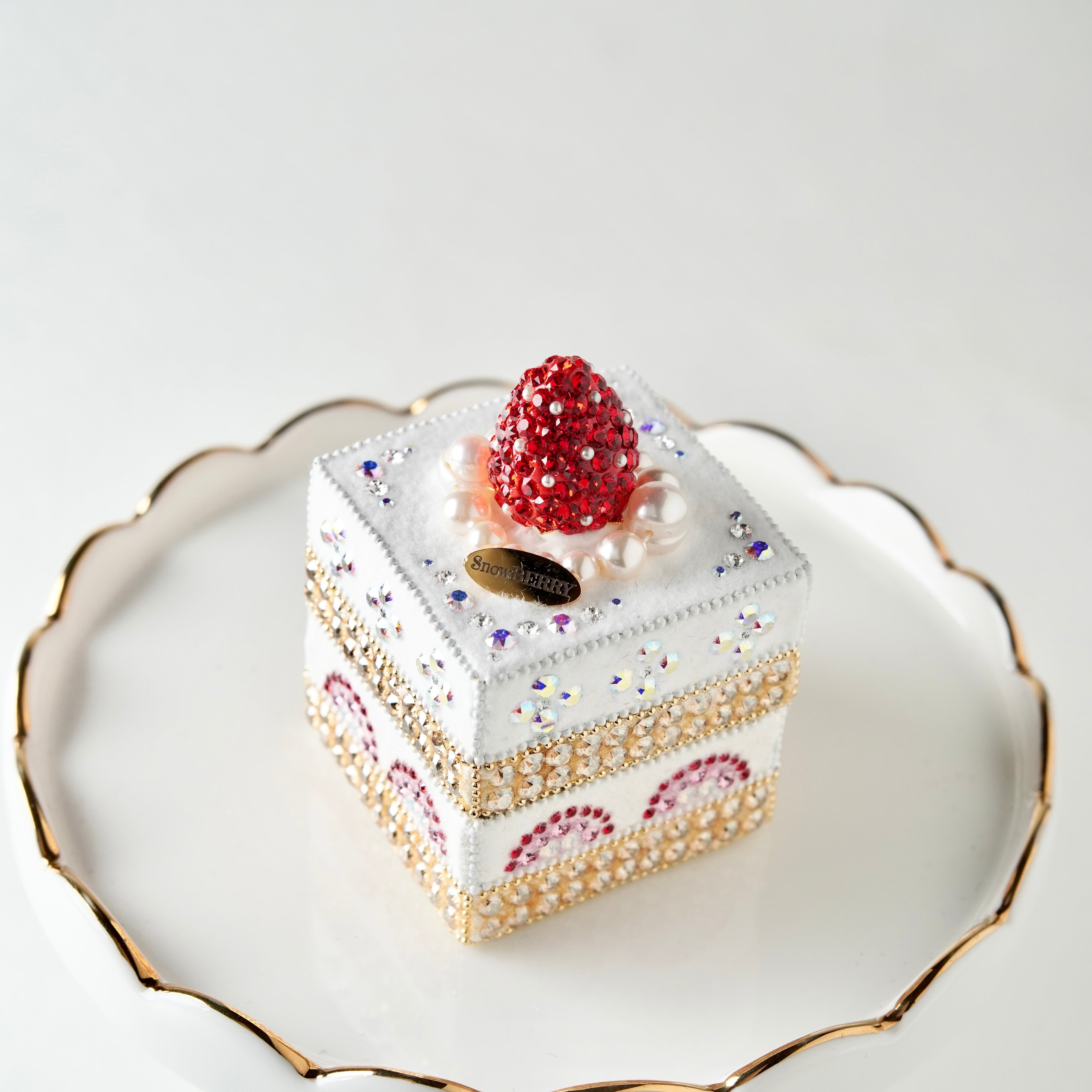 側面には苺の断面までも繊細なクリスタルで描き出され