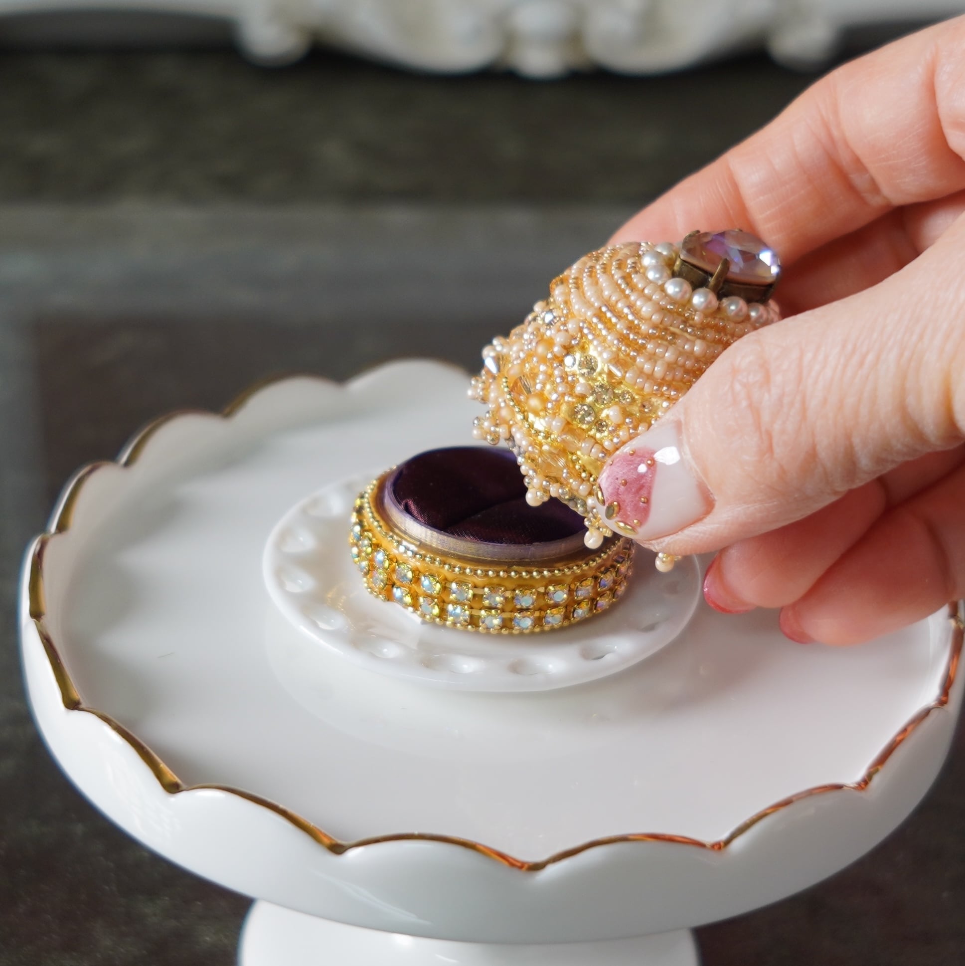 ビーズを一粒ずつ積み重ね、フリンジを揺らすまでの繊細な工程を、楽しみにお待ちいただければ幸いです。